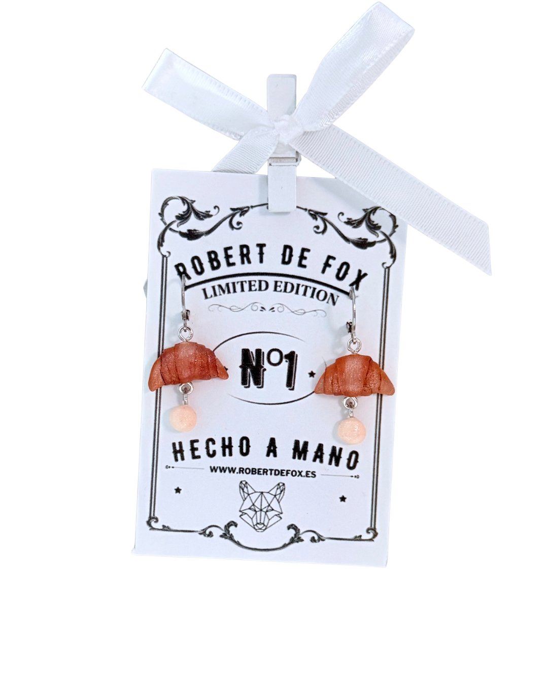 El diseño colgante les da un movimiento delicado, mientras que la pequeña bolita inferior añade un detalle ligero y armonioso. Cada par está hecho a mano, cuidando la textura y la forma para que el croissant sea tan apetitoso como encantador.