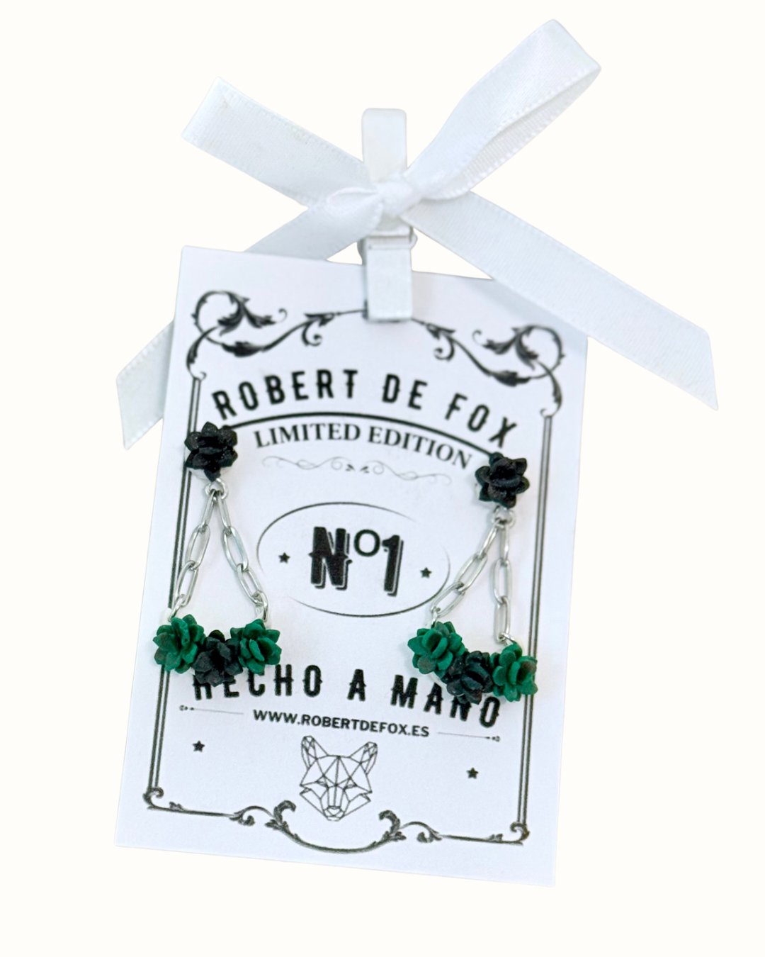 Estos pendientes de suculentas (tipo echeveria) están hechos a mano, con flores modeladas una a una en arcilla polimérica, en tonos verde oscuro y verde claro, creando un diseño orgánico y especial.