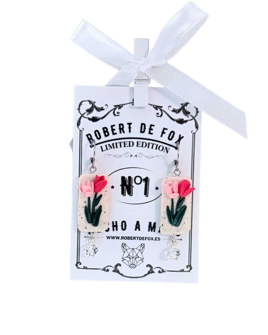 Estos pendientes de tulipán combinan la delicadeza de las flores con un diseño moderno y elegante. La base rectangular de tono suave resalta el tulipán en relieve, mientras que el pequeño cristal colgante aporta un toque de luz y movimiento sutil.