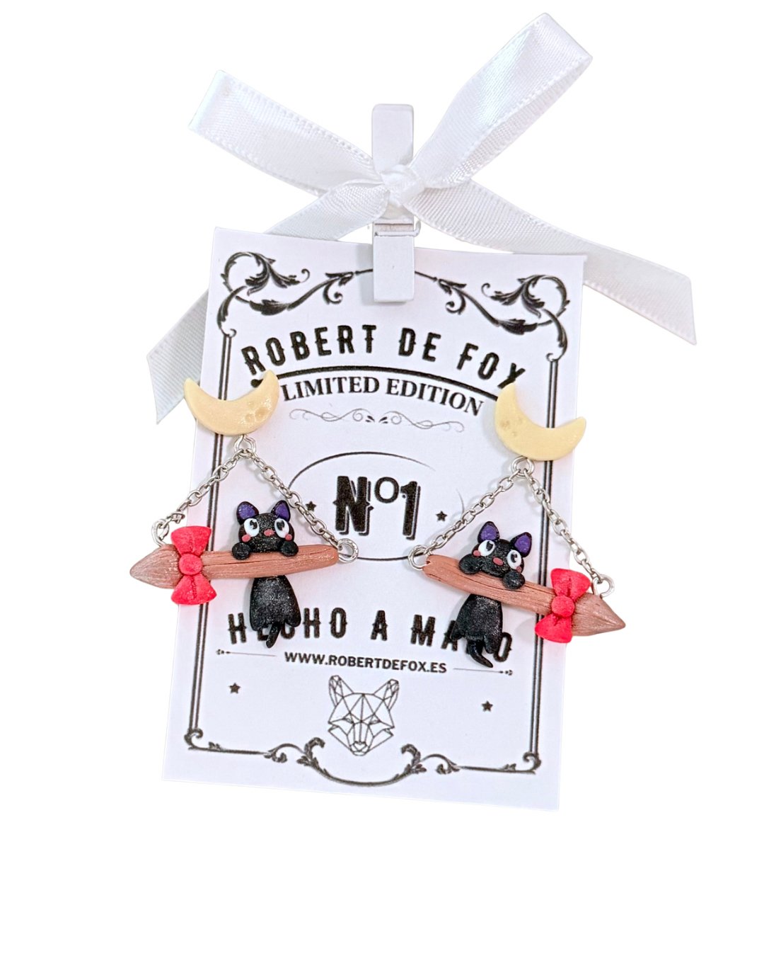 Pendientes Geek Chic – Gatito negro mágico bajo la luna
