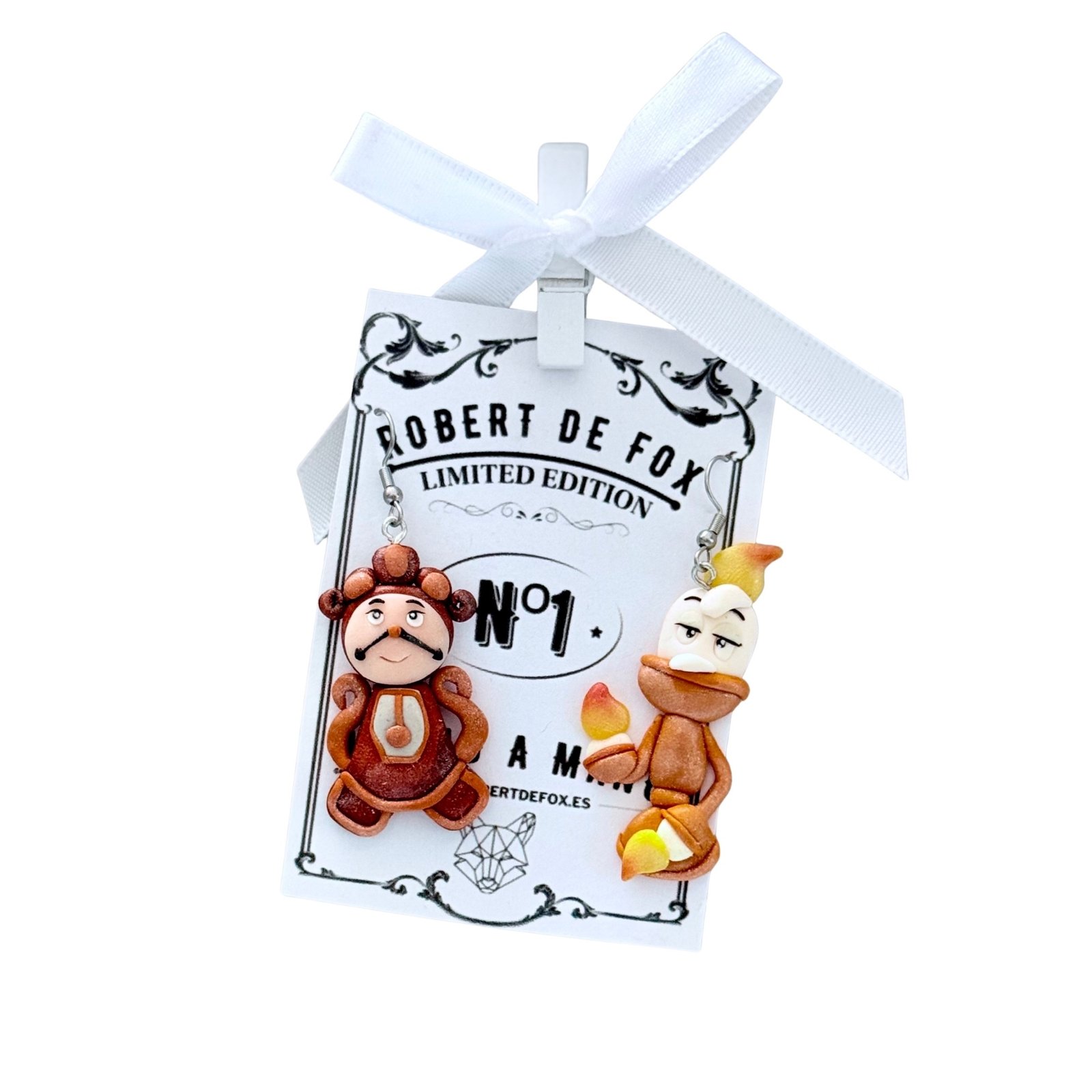 Estos encantadores pendientes inspirados en Lumière y Din Don transmiten magia, calidez y un toque clásico que nunca pasa de moda.